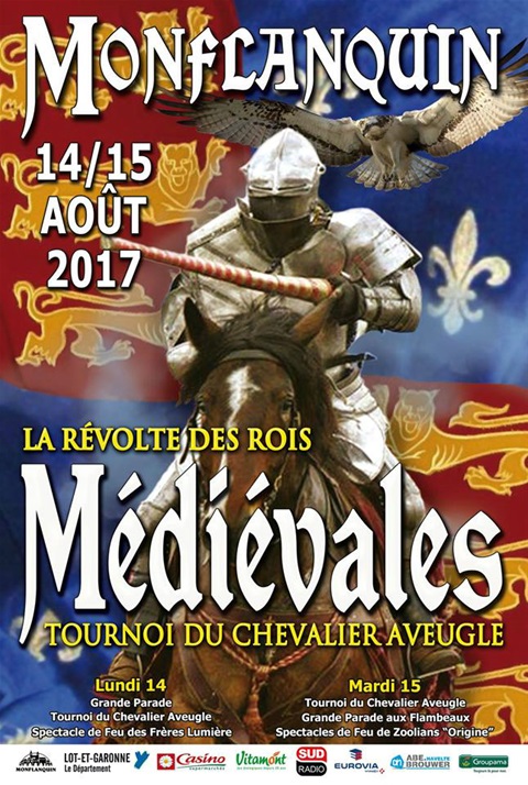 Les fêtes médiévales de Monflanquin célèbrent leur 27ème anniversaire. Deux jours de fêtes avec parades, déambulations de troupes, banquet médiéval animé, spectacles d’animaux pour grands et petits, tournoi de chevalerie. Monflanquin replonge ainsi dans son histoire avec un village décoré aux couleurs de l’époque, des estaminets à tous les coins de rue et un beau marché médiéval. Des animations garanties sur les deux jours !
