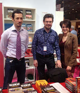 | Djemila Benhabib en compagnie des deux patrons de la maison d’édition H&O, Olivier Tourtois et d’Henri Dhellemmes, au salon du livre de Paris (2013). |