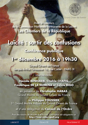 En novembre 2016, elle était l’invitée du Comité Laïcité République lors d’un débat-conférence à Paris. L’événement était présidé par le Vénérable frère trois points Patrick Kessel, ancien grand maître du Grand Orient de France et président du Comité Laïcité République. Notons que cet événement avait lieu dans la mairie du troisième arrondissement de Paris (la laïcité est fille de la franc-maçonnerie, laquelle est mère de la République française).